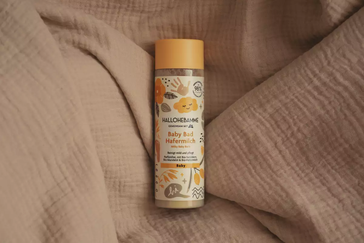 Ein Babybad ist so viel mehr als Reinigung. Es ist Zeit der Nähe, Wärme und Geborgenheit. Als Badezusatz reicht in der Anfangszeit ein wenig Muttermilch im Badewasser völlig aus. Aber was machen Familien, die keine oder zu wenig Muttermilch haben? Für sie ist unser Baby Bad Hafermilch ein wunderbarer Begleiter. Denn es enthält Bio-Mandelöl und Bio-Hafermilch im richtigen Verhältnis und reinigt die Babyhaut dadurch besonders mild und pflegend, ohne sie auszutrocknen. Dadurch ist es auch bei trockener Babyhaut ideal. Und keine Sorge: Unser Baby Bad ist so formuliert, dass es nicht schäumt und auch keine tränenden Augen bei deinem Baby verursacht.