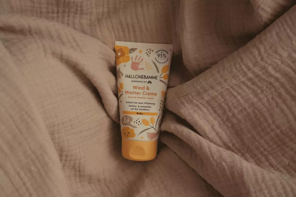 Regen, Kälte und Wind können die zarte Babyhaut stark beanspruchen. Unsere Wind & Wetter Creme wirkt wie ein schützender Mantel bei rauer Witterung: Mit ihrer wasserfreien Formulierung bildet sie eine Schutzbarriere auf der Haut und spendet gleichzeitig intensive Feuchtigkeit. Sie zieht blitzschnell ein, hinterlässt keine weißen oder klebrigen Rückstände und muss nach dem Auftragen nicht wieder abgewaschen werden. Dadurch ist sie auch unterwegs super einfach und praktisch anzuwenden.