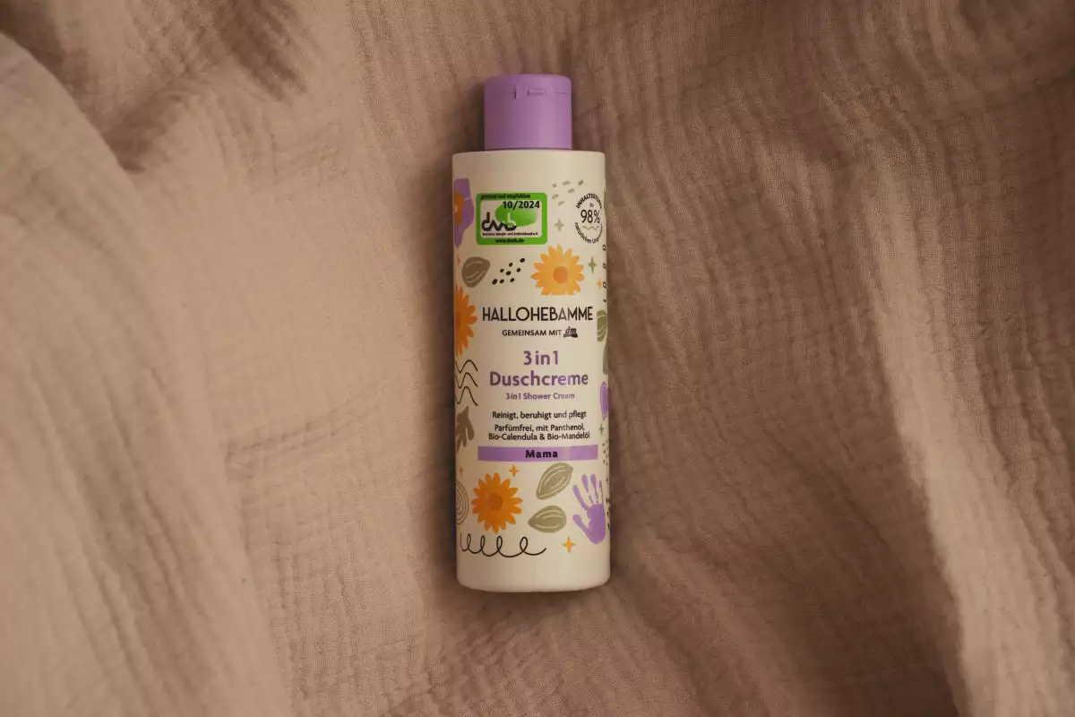 Im Wochenbett ist die Zeit oft knapp, das wissen wir. Deshalb vereint unsere 3in1 Duschcreme Körperreinigung, Intimpflege und Bodylotion in einem. Sie ist ideal für die Zeit nach der Geburt, aber auch während der Schwangerschaft schon super praktisch. Sie ist besonders mild, auch bei empfindlicher Haut, und kann Spannungsgefühle und Jucken lindern. Da du dich nach dem Duschen nicht mehr zwingend eincremen musst, bleibt außerdem mehr Zeit für dich und dein Baby, ganz ohne Abstriche bei deiner Pflege. Und genau wie unsere anderen Produkte ist auch die 3in1 Duschcreme parfümfrei. Das ist uns wichtig, damit dein Baby deinen individuellen Geruch im Wochenbett wahrnehmen kann und dieser nicht von künstlichen Duftstoffen überdeckt wird.