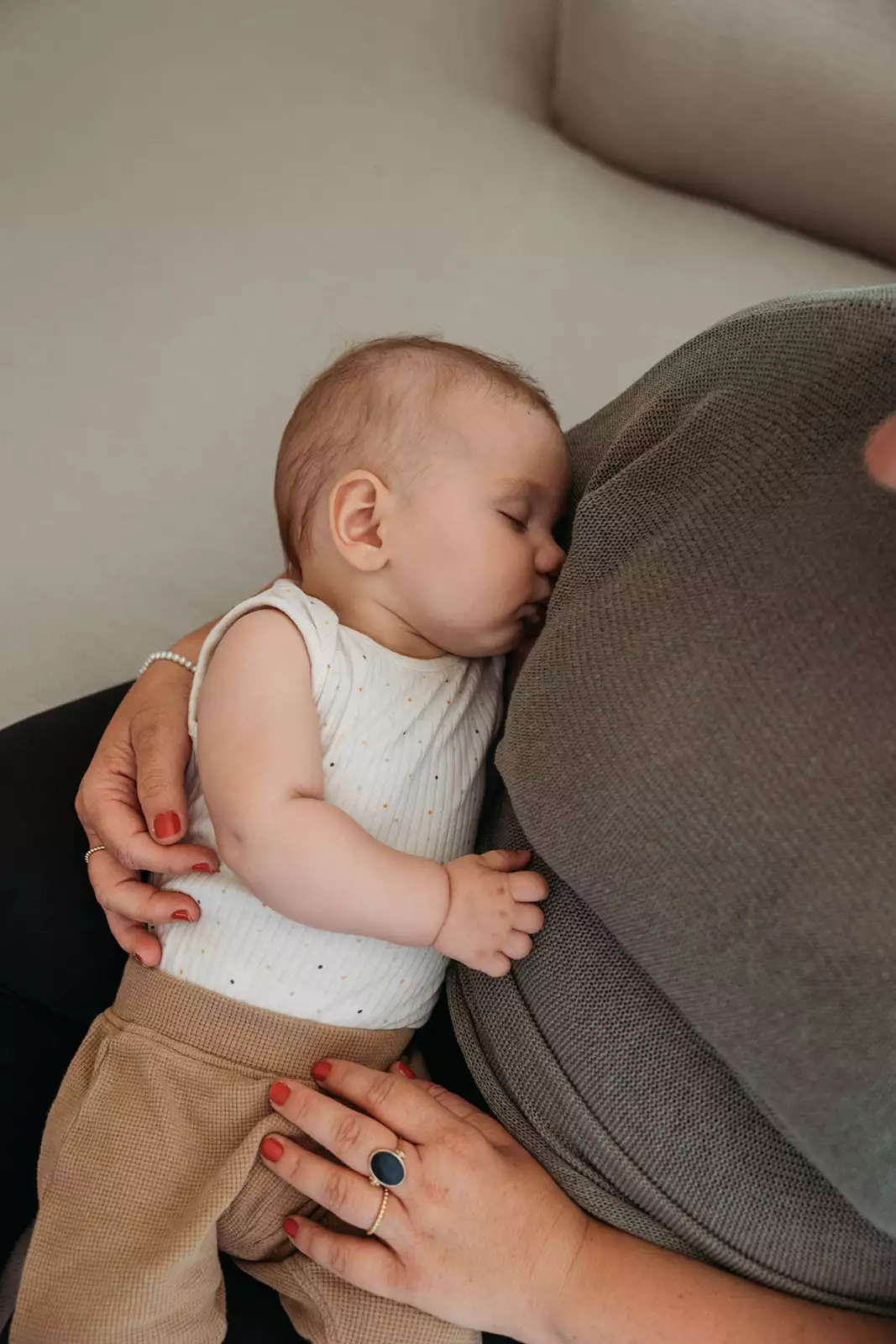 Eine Brustmassage kann dabei sehr gut helfen, das Brustgewebe vor jedem Stillen für dein Kind quasi vorzubereiten. Dadurch wird zum einen die Ausschüttung von Stillhormonen stimuliert und gleichzeitig wird das Gewebe weicher. So hast du die Möglichkeit, die Brust mundgerechter zu formen, um sie deinem Baby anzubieten. Dadurch fällt es ihm leichter, richtig an der Brust anzudocken.