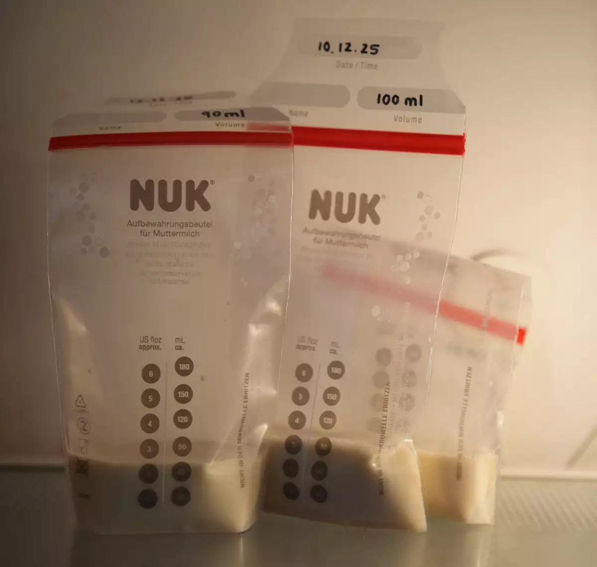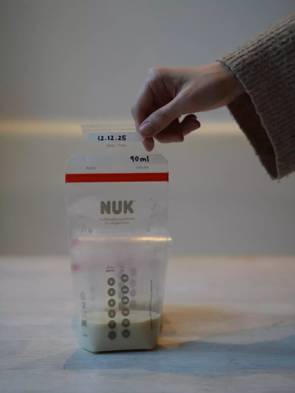 Schreibe auf jeden Beutel/Behälter das Datum, an dem du die Muttermilch abgepumpt hast. So behältst du den Überblick und weißt genau, wie lange die Milch noch gut ist. Verwende sie daher auch immer in der Reihenfolge, in der du sie gesammelt hast, damit nichts unnötig verdirbt.