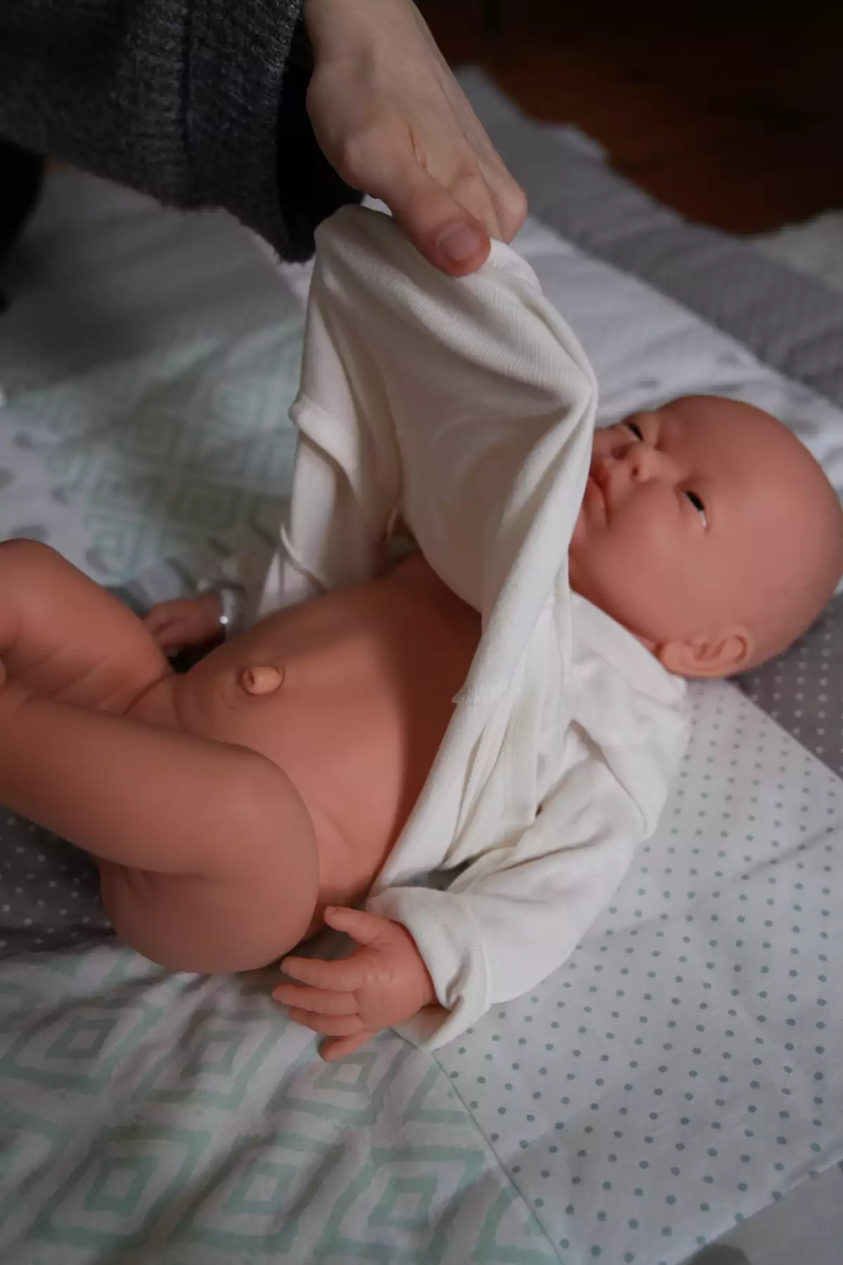 Um zu verhindern, dass das Puder in die Atemwege gelangt, haben wir einen ganz einfachen Trick für dich: Ziehe schon BEVOR du das Puder anwendest deinem Baby einen Body an, aber verschließe ihn noch nicht. Nimm nun die Vorderseite des Bodys und halte sie nach oben, sodass der Nabel frei ist und eine Art kleines Schutzschild vor dem Gesicht deines Babys entsteht. Jetzt kannst du das Puder auftragen. Gehe dabei am besten ganz nah an den Nabel ran, damit kein Puder in der Luft aufgewirbelt wird.